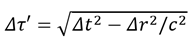 [3] Proper time and the spacetime interval are basically the same thing except the signs regarding the spatial and temporal terms are reversed, and they differ by c in order to express the units in time or space, respectively.